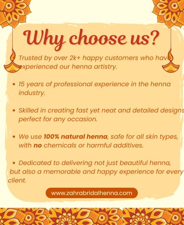 Make your Diwali events more vibrant with traditional henna artistry. Book early to secure your preferred slot!